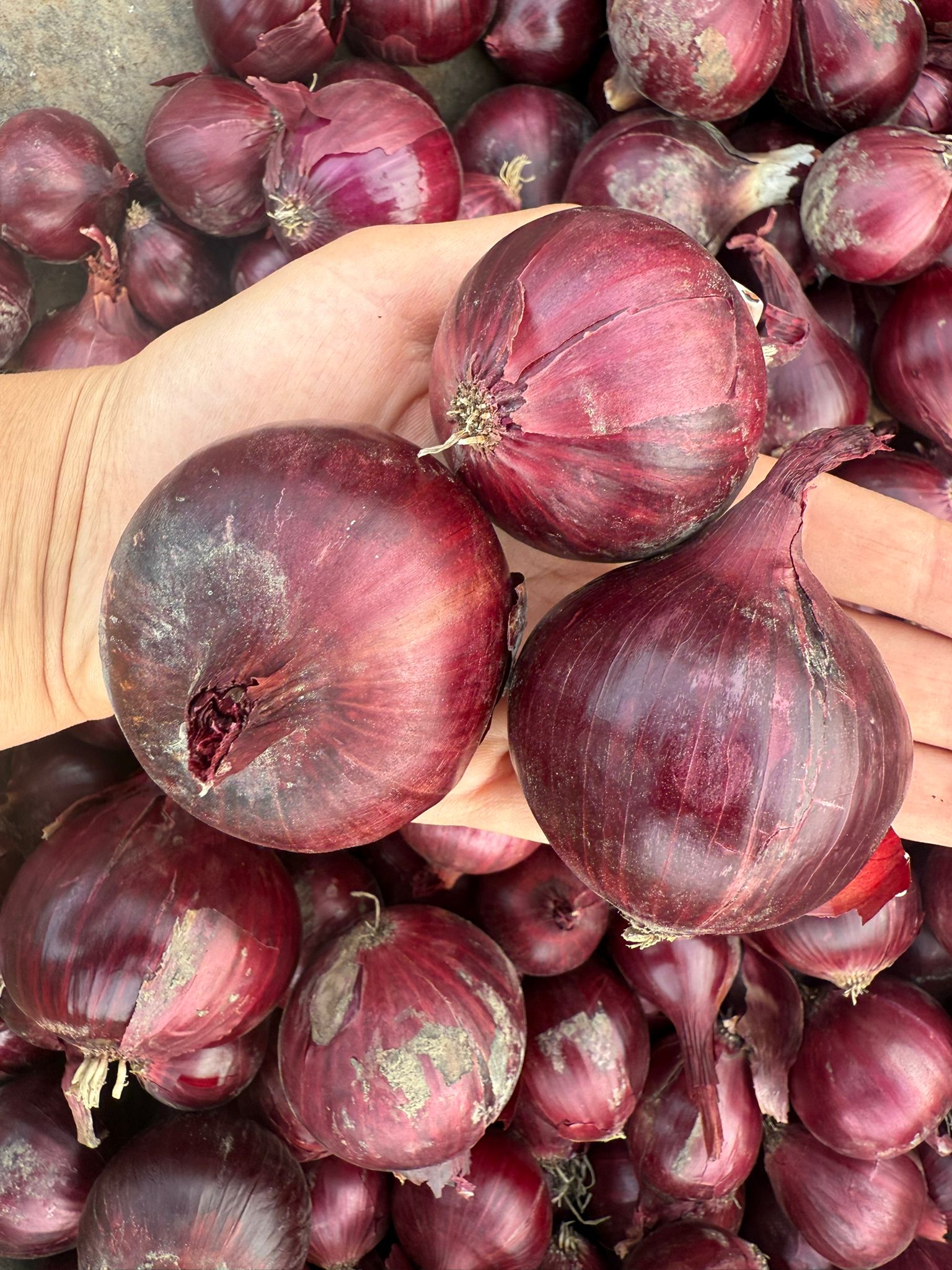 Cebula czerwona prosto od rolnika pełna smaku i aromatu. Uprawiana z dbałością o każdy szczegół. Przy obieraniu na pewno popłyną łzy. Ograniczona ilość pestycydów- bez chemicznych środków przedłużających przechowywanie.